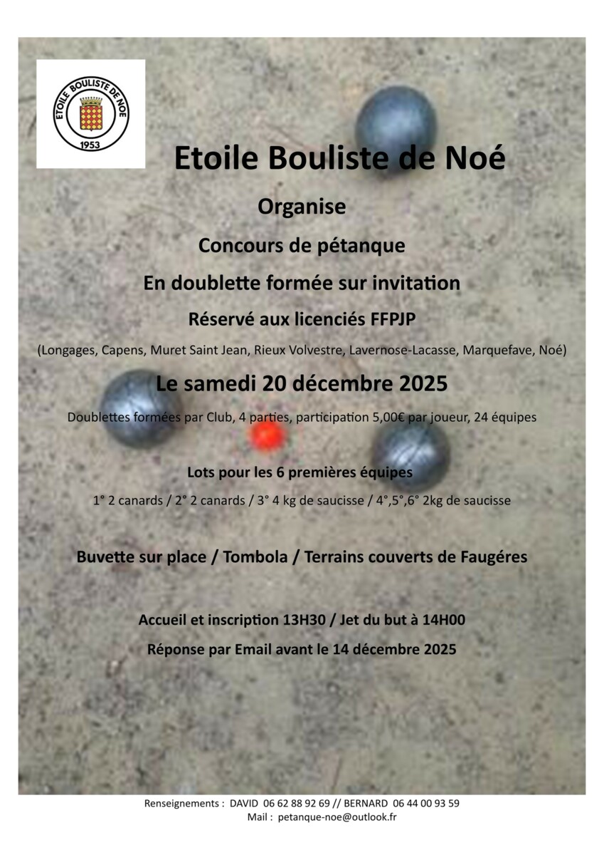 Sur les bases d'un premier RDV réussit qui a eu lieu ce samedi 06 /12, Un deuxiéme RDV le Samedi 20/12 est organisé, le nombre d'équipes réservé à l'EBN peut évoluer en fonction des retours des clubs invités.